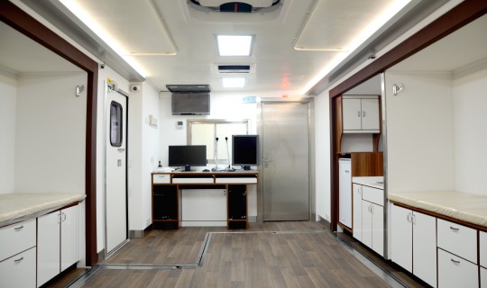 kaiyun 扩展方舱式体检车,秉承精湛的车辆改装工艺,将军品医疗方舱与民品医疗体检完美融合,针对客户个性化设计综合解决方案。